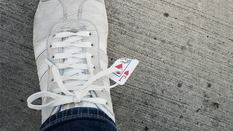 From the mind of Jota, a new idea where the illusionist clearly takes the corner of a card, ring or key, and in less than a blink of an eye makes it travel from his hands ... to his shoelaces! And truly tied!