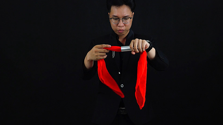 Effect 1: Show a metal tube (has a sealed bottom) to the audience and it can be checked. Put a silk into the tube. Magically the silk goes through the bottom of the tube! Pull out the silk and all these can be checked by audience.
