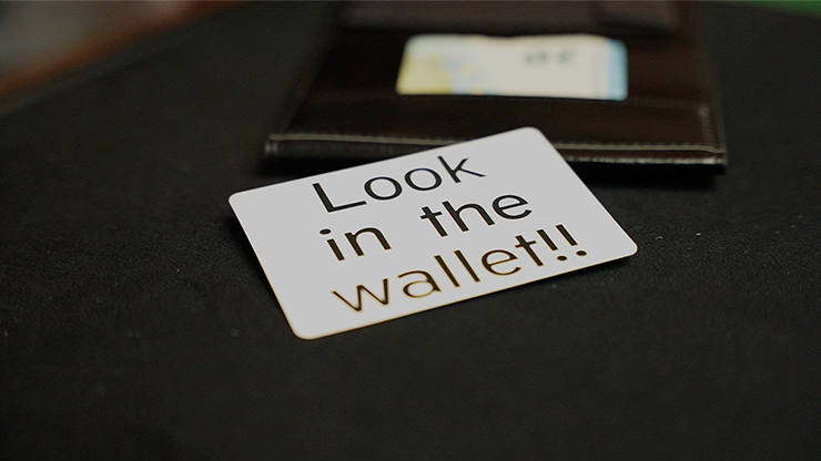 The magician draws attention to the envelope in the wallet to find the one and only card inside of it matches the spectator's freely named card.