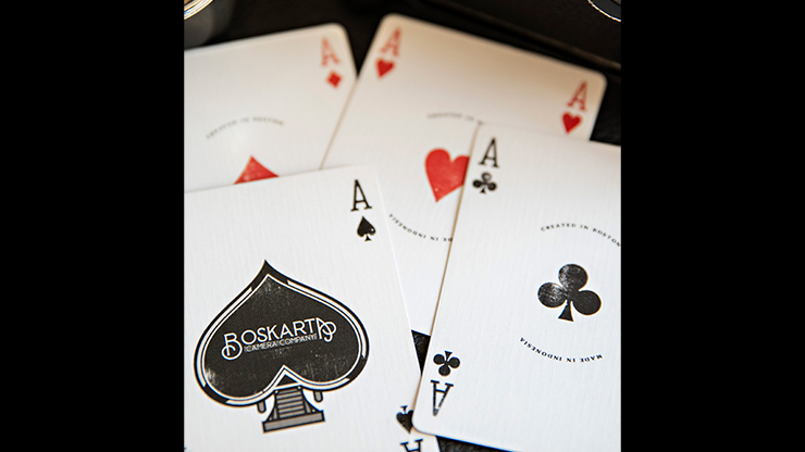 The Boskarta Playing Cards LUX Edition is the deck you take out when you want to be clean and classy. Its white tuck box is embossed with pearl foil on the front and all the same silver foil details as its HH counterpart. It just looks a little sexier.