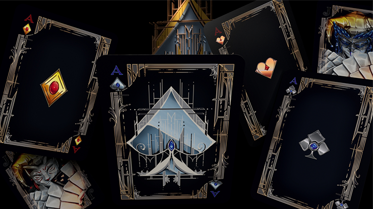 "De'vo's Signature Series Card Masters" Precious Metals is the embodiment of unique and beautiful in playing card design! This amazing new deck has custom everything- custom pips, court cards and jokers all done in 4 different precious metal coloring patterns - Platinum, Tungsten, Yellow Gold and Rose Gold. The AMAZING artwork by Anika Burrell is breathtaking! Each suit has its own unique mask and coloring broken up into the 4 different precious metals.