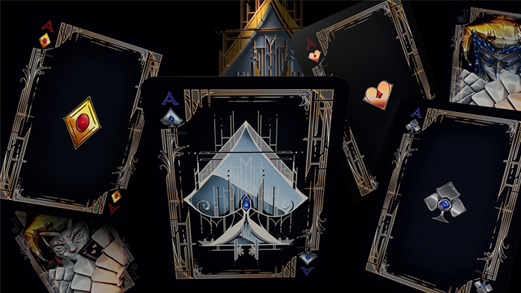"De'vo's Signature Series Card Masters" Precious Metals is the embodiment of unique and beautiful in playing card design! This amazing new deck has custom everything- custom pips, court cards and jokers all done in 4 different precious metal coloring patterns - Platinum, Tungsten, Yellow Gold and Rose Gold. The AMAZING artwork by Anika Burrell is breathtaking! Each suit has its own unique mask and coloring broken up into the 4 different precious metals.
