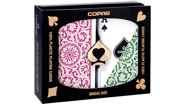 Copag 1546 Plastic Playing Cards Bridge Size Regular Index Green/Burgundy Double-Deck Set