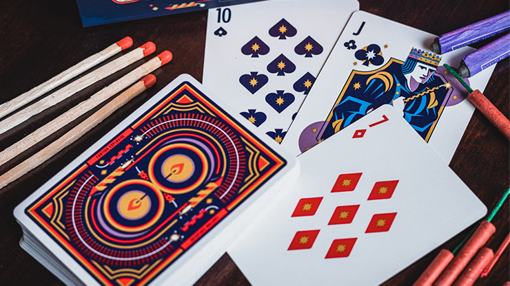 The Fireworks Playing Cards are Limited to 2500 decks. Designed by Tyler Pate. Manufactured by the United States Playing Card Company with metallic inks & Bee crushed stock.