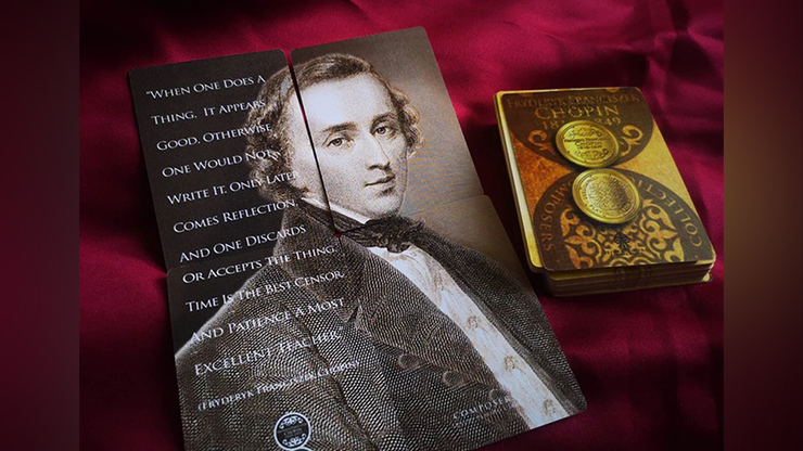 Fryderyk Franciszek Chopin Playing Cards, designed by SixtyFourPlayingCards, is a unique and elegant deck of playing cards for collectors, where the protagonist is one of the greatest Composers of classical and symphonic music of all time - Fryderyk Franciszek Chopin. The theme of Chopin is ochre, and will be the color of the theme of the tuck box, the back of the cards and the color theme of Court cards.