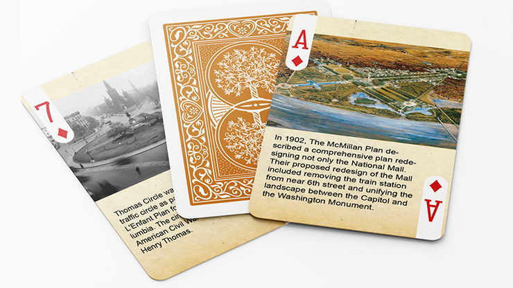 The History of Washington DC Playing Cards, are designed to entertain and educate the entire family. While playing, you'll learn about the design and construction of the nation's capital. You'll also learn about many historic events that have taken place in Washington DC.