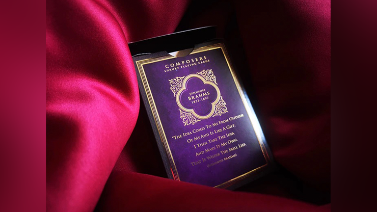 Johannes Brahms Playing Cards, designed by SixtyFourPlayingCards, is a unique and elegant deck of playing cards for collectors, where the protagonist is one of the greatest Composers of classical and symphonic music of all time - Johannes Brahms. The theme of Brahms is dark violet, and will be the color of the theme of the tuck box, the back of the cards and the color theme of Court cards.