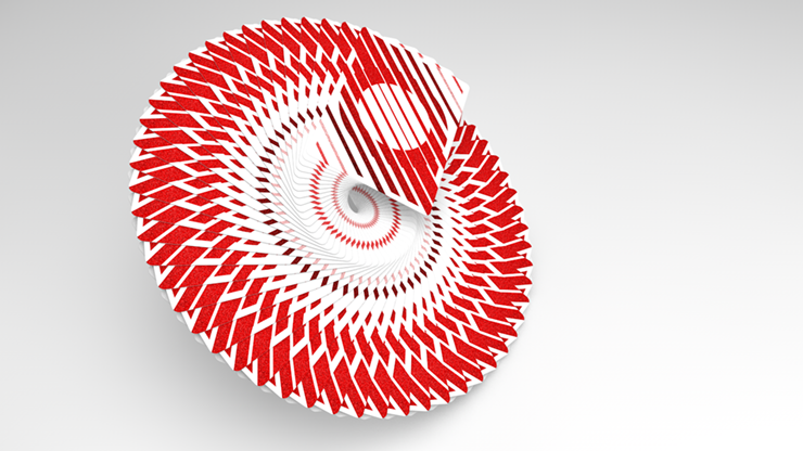 Mono - Xero R picks up from distinctive theme set by Mono - X, using a bold 2-way back design combined with side details on the card faces to allow for cardists to flourish and magicians to excel in their routines. The deck uses a variety of line thicknesses with negative space and gradients to maintain the recognisable theme is carried through from the distinctive card back where a 'O' is created, all the way through the custom pips and court cards. The deck uses a vibrant red theme throughout, still with clear distinction between the suits.