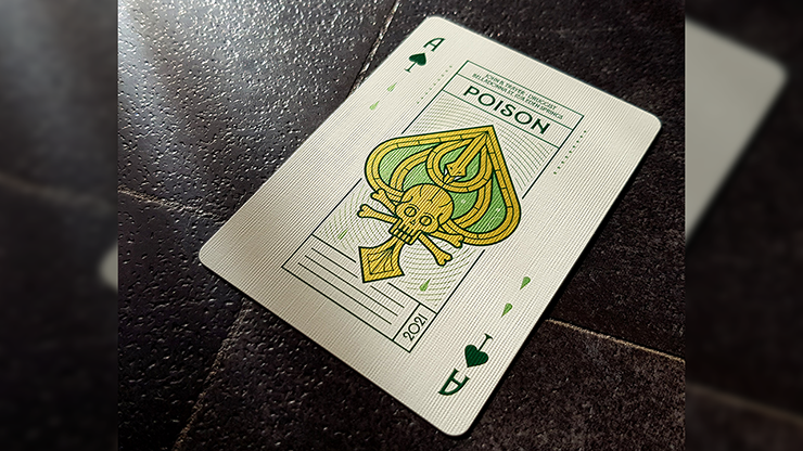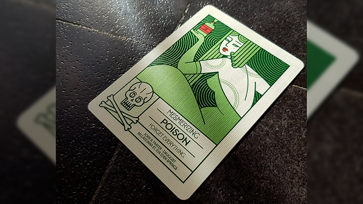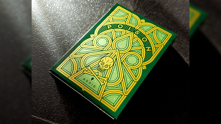 Poison is a series about alchemy, pharmacy and poisons designed by Thirdway Industries. Settled in a fictional America of 1921. Aspis is the first deck of the series, focused on metallic inks.