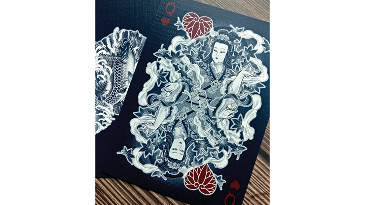 This deck is an homage to Irezumi, the traditional Japanese tattoo art form. The Sumi Playing Cards: Grandmaster Edition faithfully emulates the iconic elements of ukiyo-e, fantastical mythological creatures, and Heroes of the Marsh. It forges a visual playing card masterpiece like no other. It is truly a masterpiece, bursting with symbolic significance at every movement of the cards, including spins, shuffles, fans, cardistry, and more.