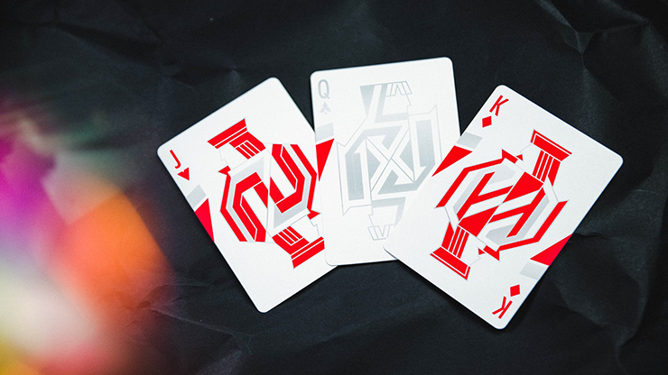 The back of the card is comprised of high-tech-armor-like X patterns and the Vertical LOGO at both ends. Its neat and bold design allows cuts and fans to effectively enhance the visual aspect of your cardistry flourishes.