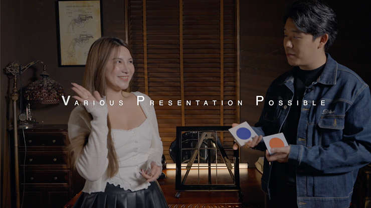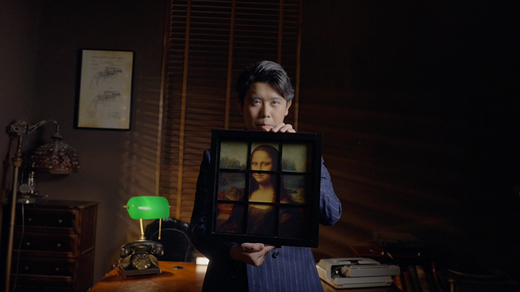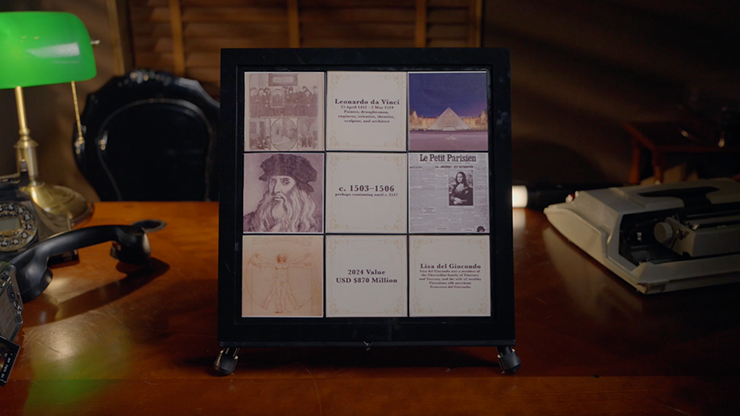 While talking about the story of The Mona Lisa, the performer has the audience member freely place the information tiles into the open windows of a nine-pane frame in any position; they can even change the position of the plates anytime they want!