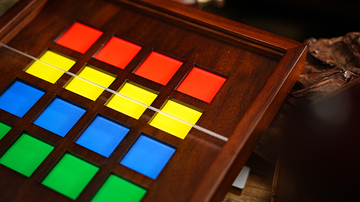 Your Audience Volunteer freely arranges the vibrant acrylic number tiles however they wish on a beautifully crafted walnut display board.