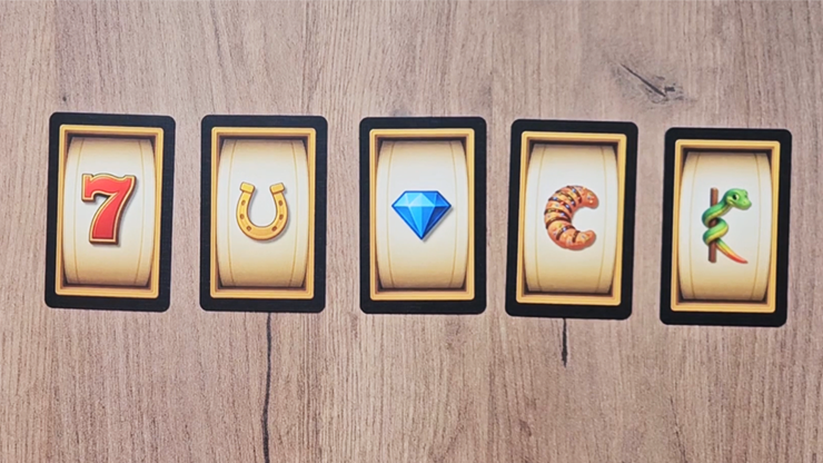 The effect: Your spectator freely chooses one of five slot-machine icon cards, hoping to hit a great prize... but naturally, they land on the worst one of the lot. They'll laugh, they'll groan, and they'll swear they should've chosen differently.